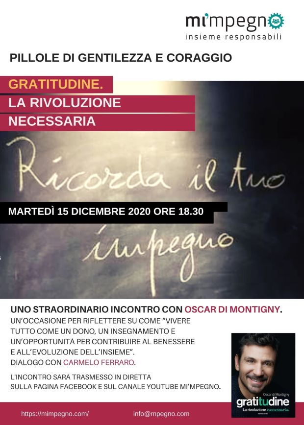 L’incontri sarà trasmesso in diretta sulla pagina Facebook e sul canale YouTube MI’mpegno.